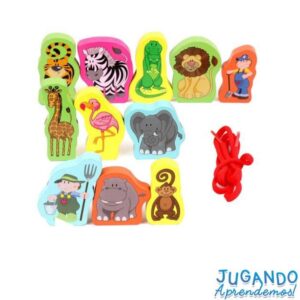 Con este exclusivo Juego de Figuras Para Enhebrar los mas pequeños de la casa se divertirán mientras aprenden. El juego consiste en enhebrar las figuras y practicar la motricidad fina.